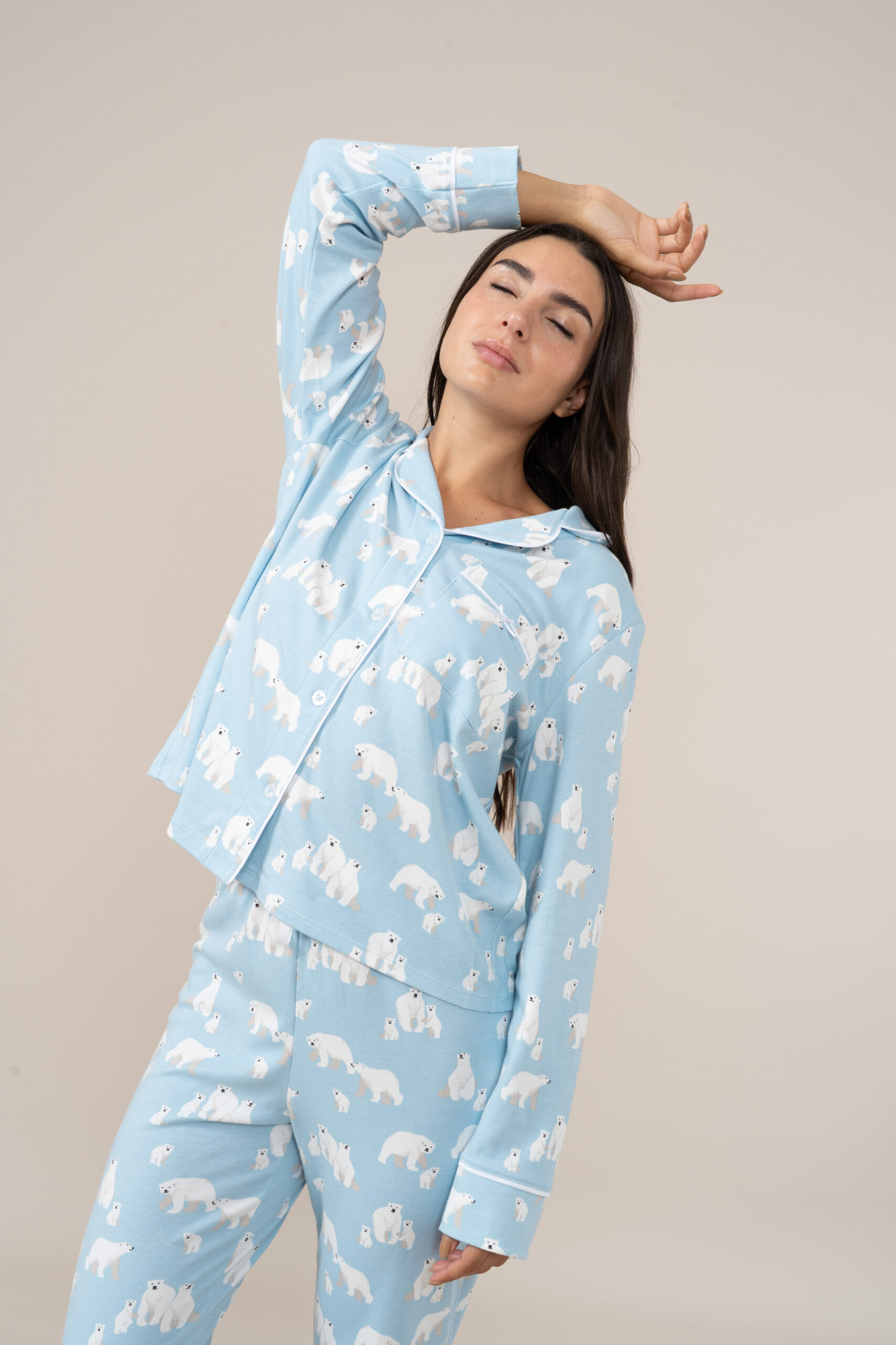 Una de nuestras colecciones familiares favoritas, nuestro print de osos polares digital (tacto cero) confeccionada con Algodon 100% Peruano. Encuentra este print para caballeros & niños!